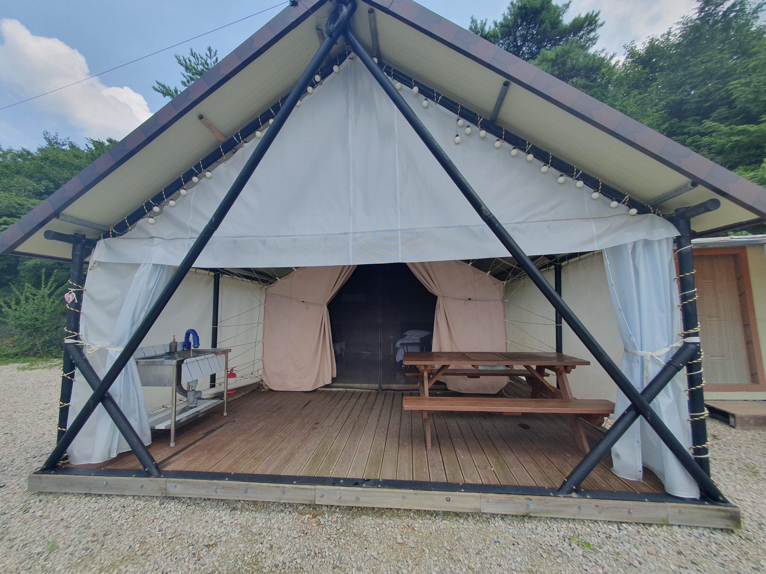 침대, 침대방수커버, 이불셋트, 전기장판, 화장대, 드라이기, 드라이기바구니, 빗, 휴지통, 에어컨, 선풍기, 전기히터, 온열판넬장판, 소화기, TV, TV 선반, 쇼파, 냉장고, 캠핑테이블, 캠핑케비넷, 콘센트 2개, 랜턴, 연기 감지기, 화장지, 모기약, 모기향, 버너, 부탄가스, 호일, 전기밥솥, 코펠( 냄비(소,중,대)), 그릇, 종지, 수저, 포크, 젓가락, 수저통, 접시, 도마, 후라이팬, 가위, 칼, 집게, 국자, 뒤집개,소주컵 4P, 물컵 4P, 그외 여분의 그릇과 컵