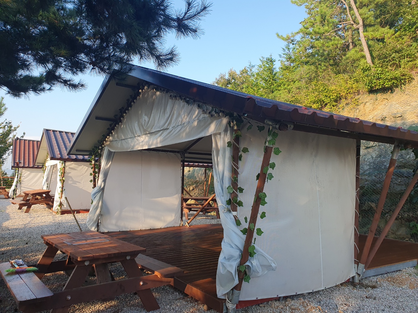 지붕 데크 3 사이트와 파쇄석 2 사이트로 나뉘어 있습니다.
